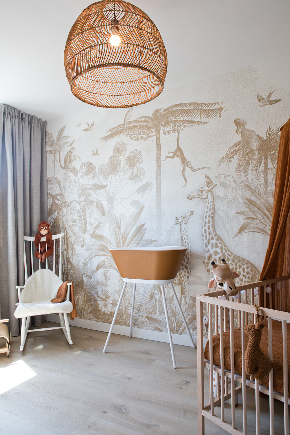 De trappen en de bovenverdieping zijn met pvc belegd. Jay heeft op de bovenverdieping de beschikking over een eigen kamer met jungle-thema. “Dankzij het behang van Pimpelmees en de accessoires van Jollein wordt hij al een echte dierenvriend”, lacht Emily. Terracotta is de overheersende kleurtint en dat geeft rust.
